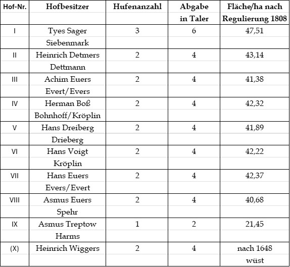 6 Tlr. Tyes SAGER 3 Huefenn; 2 Tlr Asmus TREPTOW 1 Huefe; 4 Tlr Heinrich DETMERS 2 Huefenn;
